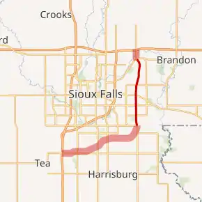 - Segment 0 - I-29 to SD115 (Minnesota Ave.) (PDF) (Map) (Revised ed.). Cartography by Brenda Miller. South Dakota Department of Transportation (published November 22, 2011). April 1, 2009. Retrieved March 4, 2015.