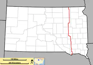 South Dakota Highway 37 (SD 37) is a state route that runs across eastern South Dakota. It begins at the Nebraska border northeast of Niobrara, Nebraska, as a continuation of Nebraska Highway 14. It runs to the North Dakota border north of Hecla, where it continues as North Dakota Highway 1. It is 242 miles (389 km) in length.