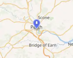 The park is bounded by King's Place and Marshall Place (both part of the A989, the latter named for Perth lord provost Thomas Hay Marshall) to the north, Shore Road to the east and South Inch View and South Inch Terrace at its southern extremity. Its western boundary abuts the rear of the homes on St Leonard's Bank, which was laid out by Perth architect William Macdonald Mackenzie in 1828.[5] The north-south running A912 Edinburgh Road, opened around 1760,[6] passes through the park's eastern third. The eastern side of the park is known as the Lesser South Inch.[1]