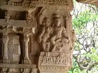 Sculptures became one of the finest medium of South Indian expression after the human form of dance. In this medium it was possible to etch the three-dimensional form in time. The traditional South Indian sculptor starts his sculpture of the divinities from the navel which is always represented unclothed by the sari. A koshta or grid of the sculpture would show the navel to be right at the centre of the sculpture, representing the source of the union of the finite body and the infinite universe. Sculptures adorn many of the temples around the complexes and also inside them. They are also depiction of dance steps of various stylizations and have served to preserve dance forms and revive it.[3]