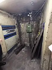 In the early 1970s the lifts to the Piccadilly line platforms were replaced by escalators, with one pair being provided between the ticket hall and a new intermediate level, where it met a linking passageway to the Circle and District line platforms, and three being provided from there to a lower concourse between the levels of the two Piccadilly line platforms. Stairs up and down from the lower concourse connect to the platforms. The stairs and passage to the westbound platform are located in the disused DR westbound platform tunnel.[28] With the introduction of escalators, the GNP&BR station building was taken out of use.