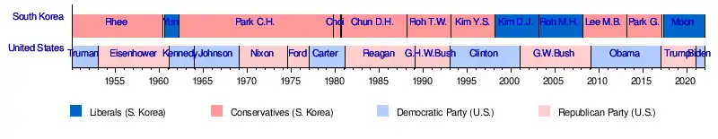 International relations between South Korea and the United States commenced in 1950, when the United States helped establish the modern state of South Korea, also known as the Republic of Korea, and fought on its UN-sponsored side in the Korean War (1950–1953). During the subsequent four decades, South Korea experienced tremendous economic, political and military growth.