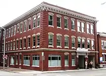 - The Cunningham Building (707 Market Street), originally called the "Keystone Building," a three-story Renaissance Revival-style brick building constructed in late 1907. The building is characterized by its marble trim, Tennessee "pink" marble voussoirs, and a segmented arched entrance.[1] The Cunningham currently houses law offices for Market Street attorneys on the first floor. There are residential condominiums on its upper floors and on the basement level. In the early years of the 20th century the building housed physicians and multiple coal and mining companies as well as residences. In the 1950s the building housed the City Directory Company and Rotheberger Directory Company on the second floor. In the 1960s the National Outboarding Association operated out of the second floor.