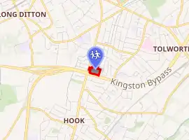 The school is situated on a main road, Hook Road, Surbiton and off the A3 at the Hook, London Junction. The closest railway stations are Chessington North, Tolworth and Surbiton with frequent trains from Clapham Junction, Vauxhall, Wimbledon, Hinchley Wood, Hampton Court, Guildford, Raynes Park and others. Many local buses also run, including;