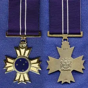 The Southern Cross Decoration, post-nominal letters SD, is a South African military decoration for merit which was instituted by the Republic on 1 July 1975. It was awarded to officers of the South African Defence Force for outstanding service of the highest order and utmost devotion to duty.[1][2][3][4][5]