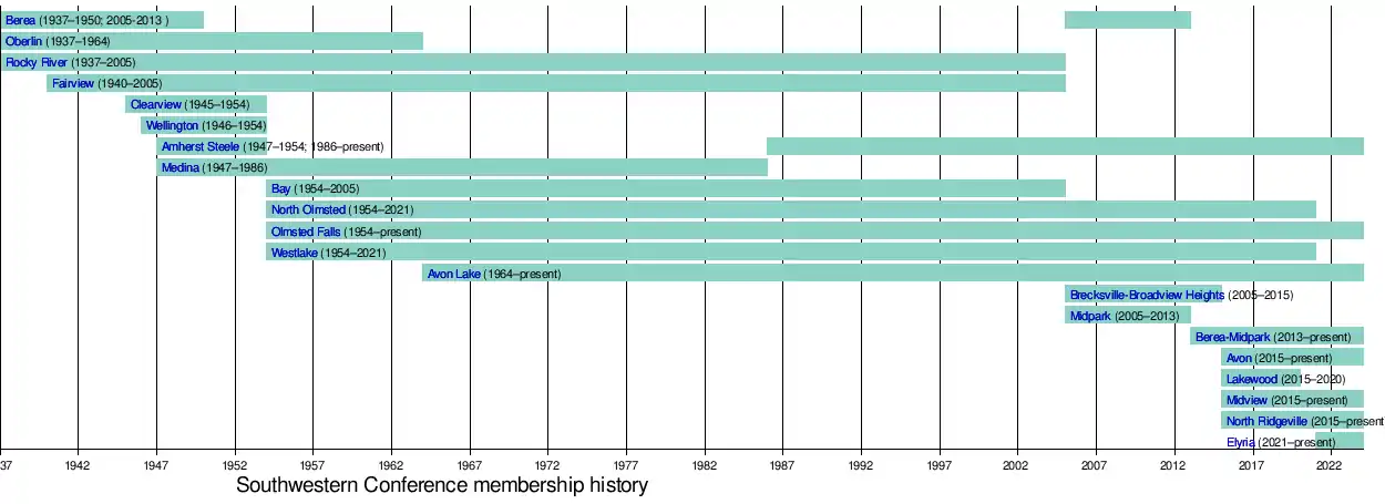 - Avon High School was approved to join the SWC in 2015-16 to accommodate the Berea-Midpark merger.[6]