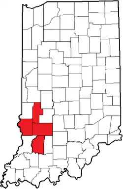 Location of the Southwestern Indiana Conference within Indiana.