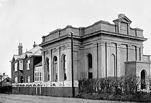 There is c. 19th century, red brick house adjoining to the eastern side of the Pump Room.[8] The nearby Spa Hotel, also designed by Lockyer, is located on the crossroads of Southend Road, Main Road and Spa Road, and was used to accommodate the visitors who came to Hockley to use the spa's waters.[21][22]