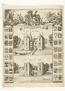 Dirk van Spangen's role during the Hook and Cod Wars is important to determine what might have happened to the castle in 1351, the year the civil war started in earnest.[14] Squire Dirk van Spangen was on the list of members of the Hook Alliance.[15] Symon van der Sluys therefore claimed that Spangen Castle had been destroyed by the Cod party in 1351.[16] Others claim that none of the Hook castles in the area was besieged, and that they were simply handed over and demolished without a fight.[17]