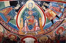 In Spain, the art of the Romanesque period represented a smooth transition from the preceding Pre-Romanesque and Mozarabic styles. Many of the best surviving Romanesque church frescos that were at the time found all over Europe come from Catalonia with good examples in the churches of the Vall de Boí area; many of these were only uncovered during the 20th Century.[13] Some of the best examples have been moved to museums, especially the Museu Nacional d’Art de Catalunya in Barcelona, which has the famous Central Apse from Sant Climent in Taüll and the frescos from Sigena. The finest examples of Castillian Romanesque frescoes are considered to be those in the San Isidoro in Leon, the paintings from San Baudelio de Berlanga, now mostly in various museums including the Metropolitan Museum of Art in New York, and those from Santa Cruz de Maderuelo in Segovia.[14] There are also a number of altar frontals painted on wood and other early panel paintings.