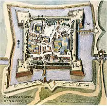 The Spaniards' Castle on a map by Antoon Sanders in 1641