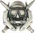 The Special Forces Tab was created in 1983 and is an embroidered quadrant patch worn on the upper left sleeve of a military uniform. The cloth tab is 31⁄4 inches wide, 3/4-inch high, and is teal blue with gold-yellow embroidered letters. A metal Special Forces Badge is authorized for wear on the mess/dress uniforms and green shirt. The metal badge is teal blue with a gold edge and gold letters.[3]