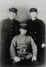 As a youth, he won admission to a teaching school in Taikyū and worked as a teacher in Bunkei-yū after graduating in high school, but was reportedly a very mediocre student.[11] Following the outbreak of the Second Sino-Japanese War, the ambitious Park decided to enter the Changchun Military Academy of the Manchukuo Imperial Army, with help from Imperial Japanese Army Colonel Arikawa, a drill instructor at the teaching school in Daegu who was impressed by Park's military ambitions. During this time, he adopted the Japanese name Takagi Masao (高木正雄).[13] He graduated top of his class in 1942 (receiving a gold watch from the Kangde Emperor himself) and was recognized as a talented officer by his Japanese instructors, who recommended him for further studies at the Imperial Japanese Army Academy in Japan.[11]