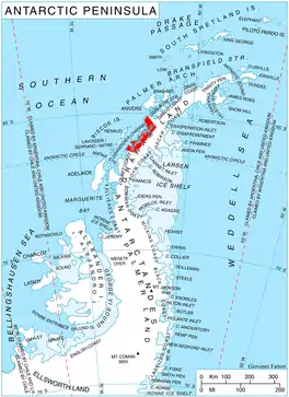 Location of Graham Coast on the Antarctic Peninsula.