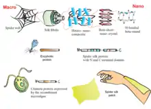 - Xia, X. X.; et al. (2010). "Native-sized recombinant spider silk protein produced in metabolically engineered Escherichia coli results in a strong fiber". Proceedings of the National Academy of Sciences of the United States of America. 107 (32): 14, 059–63. Bibcode:2010PNAS..10714059X. doi:10.1073/pnas.1003366107. PMC 2922564. PMID 20660779.