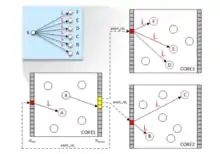 - Dynamic Neuromorphic Asynchronous Processor (DYNAP)[29] combines slow, low-power, inhomogeneous sub-threshold analog circuits, and fast programmable digital circuits. It supports reconfigurable, general-purpose, real-time neural networks of spiking neurons. This allows the implementation of real-time spike-based neural processing architectures[30][31] in which memory and computation are co-localized. It solves the von Neumann bottleneck problem and enables real-time multiplexed communication of spiking events for realising massive networks. Recurrent networks, feed-forward networks, convolutional networks, attractor networks, echo-state networks, deep networks, and sensor fusion networks are a few of the possibilities.[32]