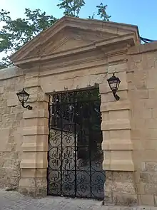 The first Spinola Palace was built in 1688 by the knight Fra Paolo Raffaele Spinola, the Grand Prior of Lombardy. According to a Latin inscription above the main entrance, the palace and its surrounding gardens were built "for the people's recreation", and it was used for cultural activities.[4][5] Since the building's erection on site it was occasionally the summer residence of the Grandmaster, generally for the celebration of the Ta' Lapsi Feast, and this was a tradition that was continued uninterruptedly throughout till the expulsion of the Order.[6]