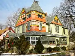 The Spring–Douglas Historic District is a set of 496 buildings in Elgin, Illinois. Of those, 455 buildings contribute to the district's historical value. It is a residential district following Spring Street and Douglas Avenue from Kimball Street in the south to River Bluff Road to the north. The lands that now comprise the district were originally settled by Phineas J. Kimball and Vincent Lovell in the 1830s. Kimball's property eventually became the southern part of the district, which mostly housed working-class citizens. Lovell's subdivisions became housing for wealthier managers and doctors. The lower district is noted for its vernacular architecture, mostly gablefront houses, while the upper district represents a wide array of late 19th and early 20th century styles, mostly Queen Anne.