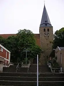 Until the construction of the church in Oberbauerschaft in 1899 the inhabitants of that village, which lies to the south on the other side of the Wiehen ridge, had to make their way to Lübbecke if they wished to attend services. A forest track to Lübbecke, the Alte Kirchweg ("Old Church Way") and a separate entrance door on the north side of St Andrew's are witness to this historical situation.[2] Since the end of 2008 the tower of the church has been externally lit at night by floodlights.