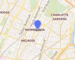 The parish was canonically established in 1849 as the Bronx began attracting German and Irish residents. The first mass was held in a private residence on Boston Road.[7] The Morrisania site for the present church on the northeast corner of Franklin Avenue and Jefferson Street was purchased in 1850 with a small wooden church immediately being erected. This in turn was replaced in 1858 by one of brick construction and dedicated by Archbishop John Hughes.[5] In 1892, the parish address was at 867 Jefferson Street.[8] That structure was destroyed in 1894 during a fire and the present structure was dedicated in 1895.[5]