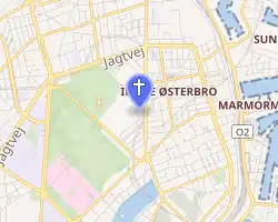The church belongs to Church of Denmark and remains the largest church in Østerbro. It lies a little recessed from Østerbrogade and is today located close to Parken and Østerbro Stadiums. The church is open to visitors every day from 9—13.[3]
