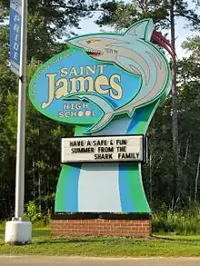 St. James High School (SJHS) is a public high school in Murrells Inlet, South Carolina, United States, located west of Highway 17 on Highway 707 approximately six miles from the Atlantic Ocean. It is one of 13 high schools in the Horry County School District. St. James has over 1,700 students and is the home of the St. James High School Sharks. St. James Elementary, Burgess Elementary, Seaside Elementary, St. James Intermediate, and St. James Middle School feed into St. James High.