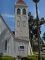 The oldest church in Palatka, St. Mark's was established in 1853. The Carpenter Gothic church building was erected in 1854 using board and batten siding with corner buttresses on the base of the bell tower. One of the founding members of St. Mark's was William D. Moseley, first governor of the state of Florida. During the early years, services were held only in the winter months and were conducted by visiting vicars from the Northern States. During the Civil War, the church was occupied by Union soldiers, who caused much damage to the structure. The church reopened after the war and achieved full parish status by 1873.[3]