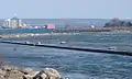 International Bridge (left) and rail bridge (right) with the remedial berm in the foreground