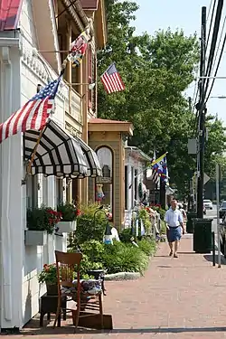 Saint Michaels is a small nautical-themed town located on Maryland's Eastern Shore.[1] It is situated along the Miles River, which leads to Chesapeake Bay.[Note 1] Boaters can get to the town's St. Michaels Harbor from nearby rivers or the Chesapeake Bay.[1] Traveling by automobile from major cities such as Annapolis or Baltimore, the most direct route to the Eastern Shore involves crossing the bay using the Chesapeake Bay Bridge.[3] Saint Michaels is part of Talbot County, and accessible by automobile via Maryland Route 33. In town, the road is known as Talbot Street and is the only road that passes through town. The town's Historic District is lined with shops and restaurants usually housed in well-preserved 19th century architecture.[4] The Saint Michaels Historic District is located in the center of town, and was added to the National Register on September 11, 1986.[5]