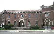 The school is a three-story I-shaped building; the rectory is a five-bay center entrance house with Romanesque Revival details.[2] The three-story convent building, which was built during the Great Depression, features more modest ornamentation. A central pavilion containing the entrance divides the building into three elements.[2]