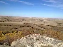 The view of the sandstone cliff at St. Victor Petroglyph Provincial Park