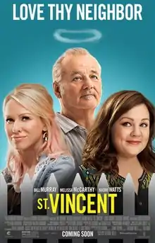 St. Vincent is a 2014 American comedy-drama film written, directed, and co-produced by Theodore Melfi.[4] The film stars Bill Murray as the title character and features Melissa McCarthy, Jaeden Lieberher, Naomi Watts, Chris O'Dowd, and Terrence Howard.