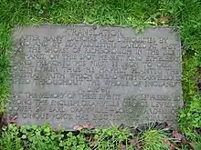The cross is accompanied by a metal plaque bearing a Latin inscription written by Henry Liddell, Dean of Christ Church, Oxford (1855–91), which commemorates the meeting between Augustine and Ethelbert, Augustine's first sermon, and the subsequent spread of Christianity across England. A separate plaque displays an English translation of the inscription.