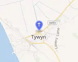 The vicarage, which was built in the early 19th century, still stands on National Street. It is now a private house called 'Tŷ Cadfan Sant'.[3] National Street (formerly Duck Street) was named after the National School, later Towyn Church School, which was once located on the street.