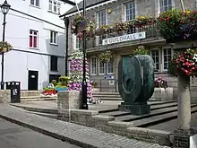 A piece of art, entitled Dual Form, designed by the sculptor, Dame Barbara Hepworth, who lived in St Ives,[7] was unveiled outside the guildhall in 1966.[8] The guildhall continued to serve as the headquarters of the borough council for much of the 20th century,[9] but ceased to be the local seat of government when the enlarged Penwith District Council was formed in 1974.[10] A visitor information centre was subsequently established in the guildhall,[11] which also became the meeting place of St Ives Town Council.[12]