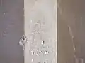 The Norman round-headed tower arches date from the 12th century. The west arch has three attached columns, and the east arch has a single column. At the base of the east arch is a pair of carved dogs. In the chapel are two ogee-headed niches and a cinquefoil-headed piscina. There is a niche with a round head on the east wall of the nave. The font dates from the 13th century, and has a plain octagonal bowl on a clunch pedestal. The communion rail, dating from the late 17th century, has barley-twist balusters. The benches date from the late 15th century, and the floor tiles from the 18th century.[1] Inside the church is a variety of wall decorations, from medieval wall paintings to graffiti, some dating as late as the Second World War.[2][4] From the medieval period are the images of two bishops in the north aisle, two further figures thought to represent Christ and the coronation of the Virgin Mary, and fragments of a possible Christ of the Trades which depicts working implements and would remind the congregation to keep the Sabbath holy, and that by using such working tools Christ would be wounded in turn. There is an Agnus Dei under the east tower arch flanked on either side by angels. On the west wall of the chancel are depictions of saints, including a female saint (possibly St Margaret) being tortured, as well as scenes from the Crucifixion and deposition of Christ. In the north chapel and arcade are graffiti from the time it was used as a school, some of which are in Latin.[2][4] In the chancel is a long desk with copious graffiti, of particular note are two small coffins with skeletons visible inside. The most recent item in the nave is a depiction of Christ drawn by a look-out soldier during World War II.[4] Also in the church are marks on stones caused by sharpening arrows during the Middle Ages.[2]