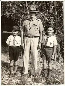 There has been a "scout" presence in St Johns Wood since before World War II.[65] During the war, the local Red Cross branch would hold their meetings in the "Scout's hall".[66] However, the 1st St Johns Wood Scout Group did not begin officially until 9 March 1945.[67] "Pop" Johnstone was the first Cub Master, and the Cub Pack met in the Igloo in Royal Parade, 100m or so west of the Gresham Street intersection. An article on "Australia's Tiniest Hospital",[68][69][70] Target included a photo of "Pop" Johnstone with two Cubs.[71] He remained Cub Master until 1946, when he became Group Scout Master. He led the Group until June 1947, when he resigned for health reasons.