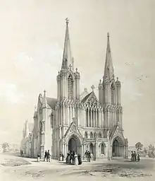 G. Hawkins, Exterior View of the Proposed New Church Kentish Town St. Pancras (St. John the Baptist). Lithograph published by Day & Haghe. n.d.