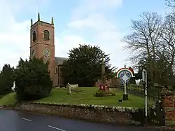 There are two listed buildings in the churchyard: a sundial dated 1798[8] with a gnomon dated 1999, and a table tomb near the east end of the church.[9] There is also a war memorial near the churchyard gate.[10] The churchyard also contains the war grave of a Canadian soldier of World War I.[11]