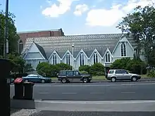 St Mary's Cathedral Church, also known as St Mary's Church, is the former Cathedral Church of the Anglican Diocese of Auckland. Located in Parnell, it replaced the earlier Old St Mary's. This wooden Gothic Revival church was designed by the prominent Christchurch architect Benjamin Mountfort and completed in 1897. The building served as the Cathedral Church and principal Anglican church of Auckland until 1973 when the Chancel of Holy Trinity Cathedral, for which the foundation stone was laid in 1957, came into use. In 1982, St Mary's Church was moved across Parnell Road to its present site beside the cathedral.