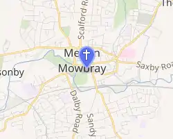 St Mary's Church is the largest and "stateliest" parish church in Leicestershire,[3] with visible remains dating mainly from the 13th-15th centuries. The stonework in the lowest section of the tower, which has Norman windows, dates from 1170, although there were certainly one or more Anglo-Saxon churches on this site before the Norman one. It is built on a plan more usual for cathedrals and the 100-foot tower dominates the town, and is a rare example of a parish church with aisled transepts (one of only five in the country) a feature usually found only in a cathedral. It contains a number of notable monuments including the tomb of Roger de Mowbray, 1st Baron Mowbray and others dating from the 14th to the 18th century; also a memorial tablet to equine artist John Ferneley (1782 to 1860).[4]