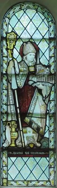 Some Norman windows survive: these are large, round-arched and chamfered with deep splays.[4][5] The chancel has 13th-century lancets, some of which have stained glass by Charles Eamer Kempe[6] (one, of St Richard of Chichester, has been described as "of exceptional quality compared with most windows of this period [late 19th century] in Sussex").[26] The east window of the chancel has stained glass attributed to Thomas Willement. The south aisle, added in the 13th century and unblocked in 1867 during the restoration of that year, has chamfered arches supported on round abaci and octagonal responds.[9]