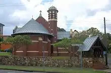 By 1922, renewed activity under Reverend George Neal saw a committee established to build the new church. A large meeting chaired by Archbishop Sharp was held in July to consider whether a new church should be built in timber or brick. The committee emphasised the need to act as soon as possible, as the present building was inadequate for its needs. The vote for a brick church was "practically unanimous".[15] St Paul's attained the status of parish in 1923 and in June 1923 the Corporation of the Synod of the Diocese of Brisbane formally acquired a new site for St Paul's on the corner of Vulture Street and Balmoral Terrace.[16][17] The elevated site, "nearer the tramline and in a more conspicuous position",[18] was consciously chosen to enhance the prominence of the church within the suburb. At a fundraising event in November, Canon Francis de Witt Batty commended the decision to bring St Paul's Church out of "comparative obscurity into the light of day", while also noting "Brisbane had awakened at last to its duty in the matter of church building".[1][19]