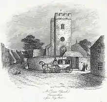 St Peter's Church is recorded as being transferred to Battle Abbey between 1107 and 1125.[5] The current church building probably dates from later than this, with the nave and chancel dating to the 13th or 14th century. The south aisle and north transept possibly date to the late 14th century. The tower was rebuilt a century after that and a porch added at the same time.[2] The nave and chancel were raised and largely rebuilt during the 16th century.[5]