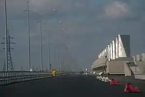 The Saint Petersburg Flood Prevention Facility Complex[1] (Russian: Ко́мплекс защи́тных сооруже́ний Санкт-Петербу́рга от наводне́ний, tr. kómpleks zashchítnykh sooruzhéniy Sankt-Peterbúrga ot navodnéniy), unofficially the Saint Petersburg Dam, is a 25 km (16 mi) long complex of dams for flood control near Saint Petersburg, Russia. The dam extends from Lomonosov northward to Kotlin Island (and the city of Kronstadt), then turns east toward Cape Lisiy Nos near Sestroretsk.