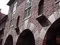 In 1924, Ludwig Roselius acquired a lease for a period of 60 years on the land on Böttcherstrasse covering No. 15-19 and later also obtained permission to develop the old packhouses at No. 4-5. He persuaded the authorities to let him build a small colony of shops, studios and apartments there, drawing on North German architectural styles. Roselius commissioned the architects Eduard Scotland and Alfred Runge who achieved the required historic Gothic style by making use of dormers, stepped gables and arcades.[1]