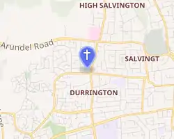 The parish, in its present form (ratified in 1974), covers the Durrington, West Durrington and High Salvington suburbs in the northwest of the borough of Worthing, and some surrounding rural areas. The eastern boundary is formed by Mill Lane, Half Moon Lane and Stone Lane; the main Littlehampton Road marks the southern boundary; and Titnore Lane and field boundaries form the other parts of the boundary.[30][31]