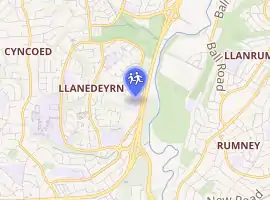 In September 2013, St Teilo's High School officially moved from its location on Llanedeyrn Road to the playing fields of Llanedeyrn High School, with the former site becoming the home of Ysgol Gyfun Gymraeg Bro Edern. The new school was designed by architects Austin-Smith:Lord in a 'five finger' design, to accommodate over 1400 pupils.[4] The school has a curved design which acts as a sound barrier against the noise pollution caused by the large volume of traffic on the nearby A48 road. However, air pollution is an issue due to the school's close proximity to the A48.[5] The school has 97 full-size classrooms, of which 8 are ICT computing suites. As part of the new building, a biometric payment system was introduced. Students can now pay for lunch using their fingerprint and load money onto their account via ParentPay, as well as being able to print using their biometrics through PCounter Secure Printing. A deal was also reached with the local Sony UK Technology Centre in Pencoed to provide digital signage services, projectors and video recording facilities for the school.[6] The school was built in 5 stages, the last stages including the construction of the MUGA, 3G pitch and football and rugby playing fields.