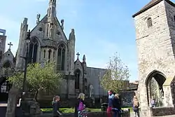 St Thomas of Canterbury Church is a Roman Catholic Parish church in Canterbury, Kent, England. It was built from 1874 to 1875 in the Gothic Revival style. It is situated on the corner of Burgate and Canterbury Lane, west of Lower Bridge Street, opposite the grounds of Canterbury Cathedral in the centre of the city. It is the only Roman Catholic church in Canterbury, built on the site of a medieval church (demolished in 1870); the old St Mary Magdalen’s Tower was retained. The church contains relics of Thomas Becket.[1][2]
