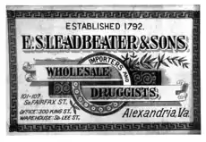 In 1865, the business was operated by John's son Edward and soon supplied to nearly 500 pharmacies throughout the Washington DC area. At its peak, the Leadbeaters employed 12 salesmen throughout Virginia, West Virginia, and North Carolina to promote their wholesale and mail order businesses. The company operated in 11 buildings in Alexandria, including the two main buildings on Fairfax Street, offices on King Street, warehouses on Lee and Prince Streets, and an office in Washington, D.C.